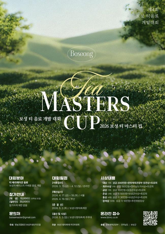 대회 참가 신청과 자세한 사항은 ‘보성 티 마스터컵’ 공식 누리집(www.btmc.co.kr)에서 확인할 수 있다.