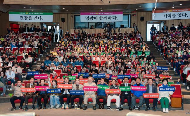 이날 참가자들은 ‘걷기로 기억을 지켜줘’, ‘걸어서 영광속으로’라는 메시지를 함께 완성하며 치매 예방과 건강한 생활 실천에 대한 공감대를 형성했다. 이어 군수님의 힘찬 출발 구호와 함께 군민들은 봄기운이 완연한 영광의 길을 함께 걸으며 건강한 일상을 다짐했다.