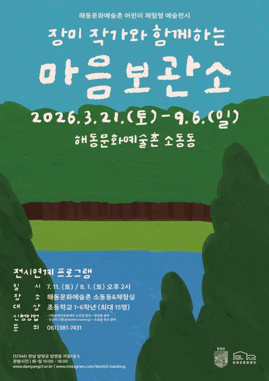 담양군문화재단 해동문화예술촌이 지난 3월 21일 2026 상반기 기획전시와 어린이 체험형 예술전시를 개최했다고 밝혔다.