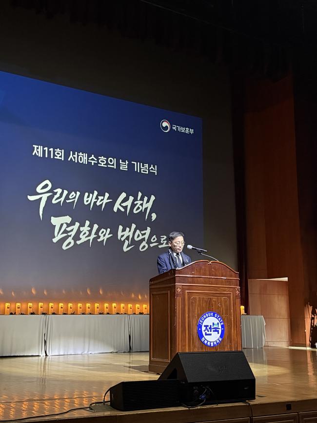 전북특별자치도는 26일 도청 공연장에서 ‘제11회 서해수호의 날’ 기념식을 열고, 서해를 지키다 산화한 55인의 호국영웅을 추모하며 도민과 함께 안보의식을 다지는 시간을 가졌다.