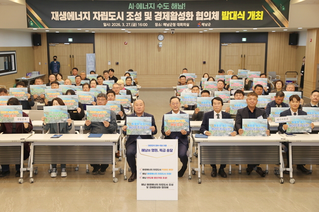 명현관 군수는 “국가 AI컴퓨팅센터 확정과 전력 인프라 확충 등 해남의 미래 산업 기반이 빠르게 구축되고 있다”며 “민관 협의체를 중심으로 재생에너지 자립도시 조성과 신산업 유치를 적극 추진해 해남이 대한민국 에너지·AI 산업 중심지로 성장시키겠다”고 밝혔다.