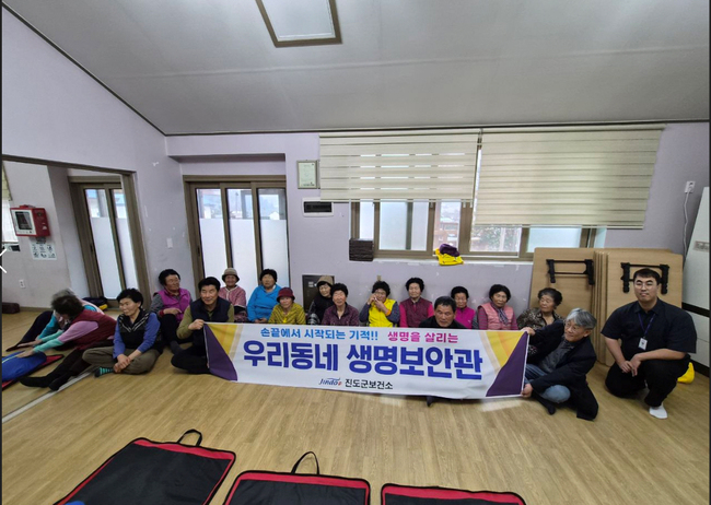 진도군보건소는 진도국민해양안전관과 함께 응급상황 발생 시 군민의 대응 능력을 향상하기 위해 지산면 관마 마을회관을 방문하여 심폐소생술과 자동심장충격기 사용법에 대한 교육을 진행했다.